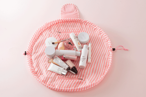 ✔ PACK UP INSTANTLY – Packing up all your products is no longer a chore. Just place everything on the open makeup bag. and pull the strings to close. It really is that simple.