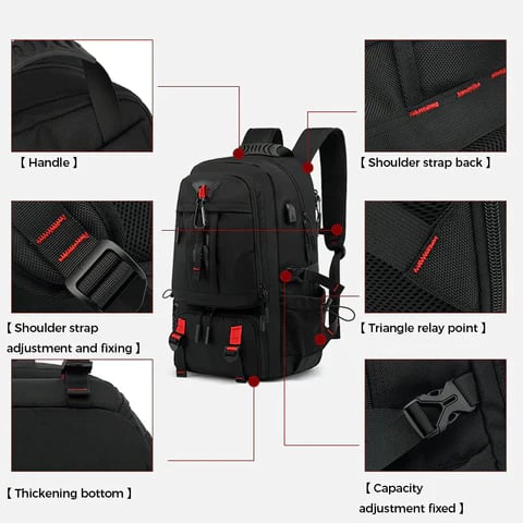 Large Capacity: The large capacity backpack can accommodate laptops. cameras. hiking poles. tents. books. clothes. shoes. water glasses. umbrellas and other daily necessities. You can take this mountaineering backpack for travel. climbing. hiking. camping. fishing and more.